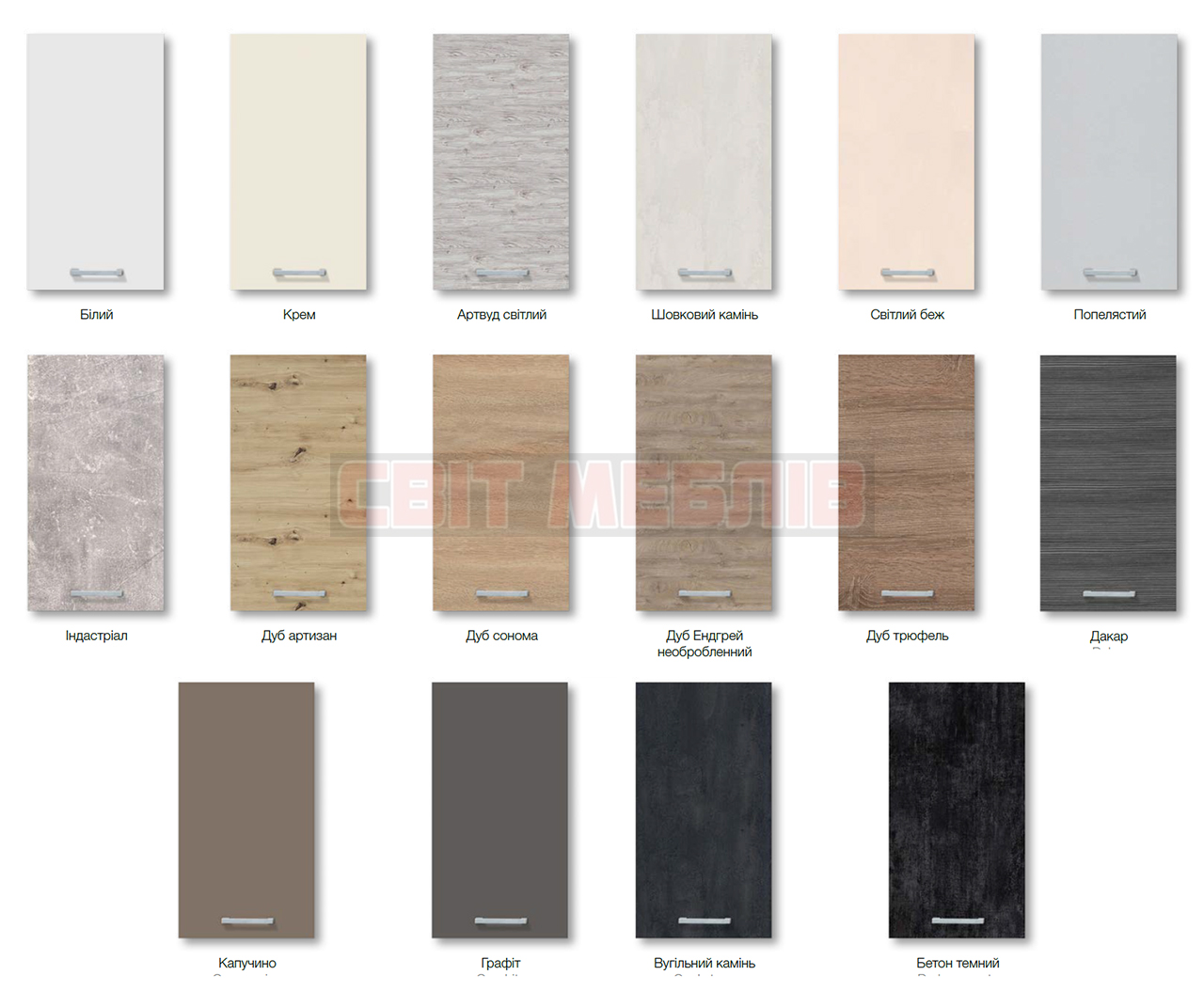 Кухня Марта изготавливается мебельной фабрикой Мир Мебели с ламинованаго ДСП класса Е1 (не содержит вредных для человека клеев и смол), фасад ДСП. Большим преимуществом данной кухни является возможность выбора комбинации ящиков нижних и верхних элементов. За счет возможности выбирать тумбы и подобрать комплект на разный метраж кухни, подберем нужный комплект для Вас.