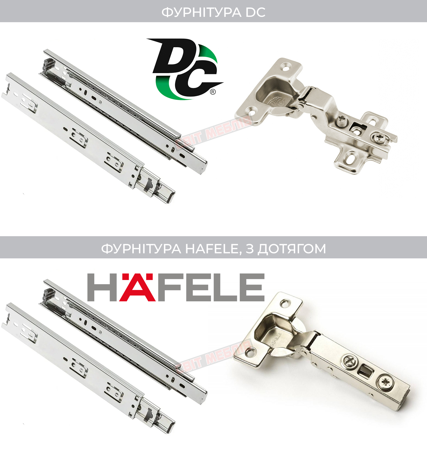 | Тип направляющих для выдвижных ящиков | Телескопические (шариковые), Роликовые |