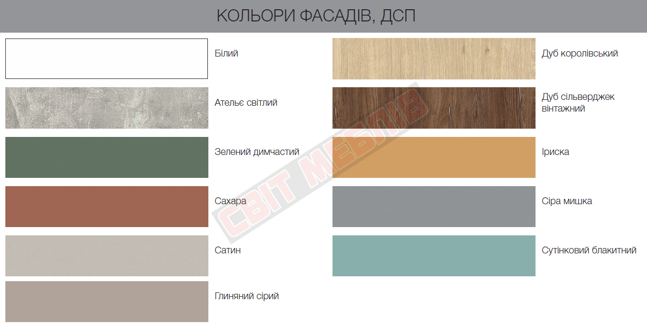 | Цвет (оттенок) мебели | Красный, Серый, Капучино, Белый, Голубой, Коричневый, Зеленый |
