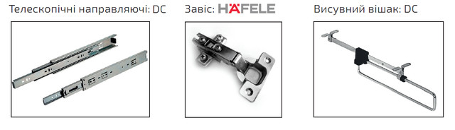| Тип направляючих для висувних скриньок | Телескопічні (кулькові) |