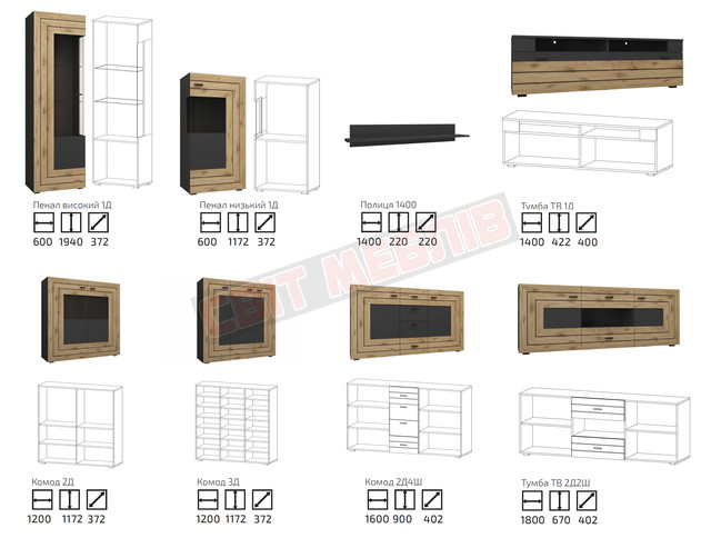 Відправка з 27 листопада 2025Сучасний високий комод 2Д з полицями Джейкоб, шириною 120 см і глибиною 37 см. Містить: дві секції з полицями всередині, дверцята зі скляними вставками.Виготовляється з ламінованого ДСП класу Е1 (не містить шкідливих для людини клеїв і смол), з фасадами МДФ, у двох варіантах комбінацій кольорів: дуб вікінг/антрацит і дуб вікінг/білий. Належить до модульних меблів Джейкоб, що дає можливість підібрати необхідний комплект для вашої вітальні. Меблі у вітальню Джейкоб, виконані в стилі модерн, випромінюють елегантність і сучасність. Відтінок антрацит надає інтер'єру вишуканості, а фасади під дерево в кольорі дуб вікінг додають теплоти і природної краси. Гармонійне поєднання кольорів створює атмосферу затишку та стилю, підкреслюючи сучасні акценти в дизайні приміщення.
