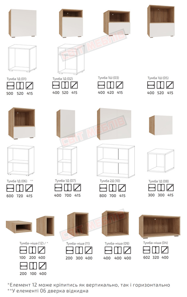 | Колір (відтінок) меблів | Дуб сонома, Білий |