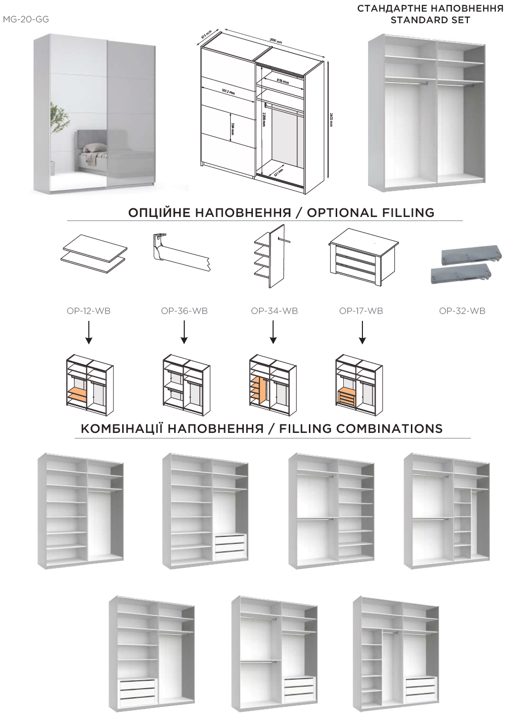 | Довжина шафи-купе | 2000 мм |