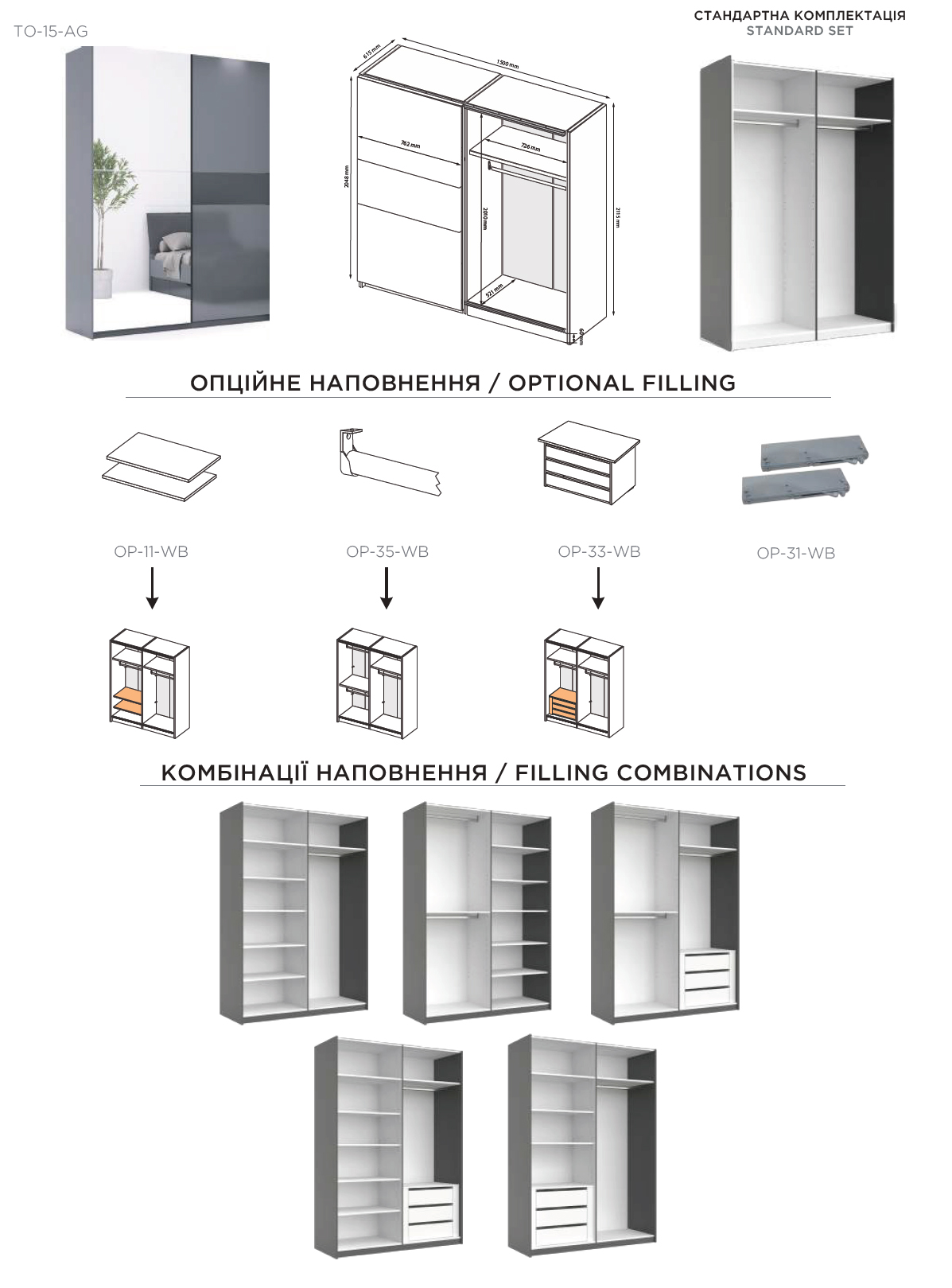 Є частиною модульної спальні Тео, що дає можливість комбінувати її з іншими елементами, адаптуючи комплект меблів під ваші уподобання й особливості приміщення.
