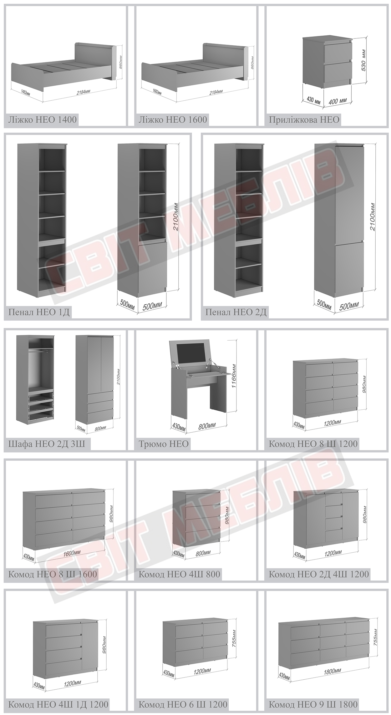 Усі елементи модульних меблів Нео: