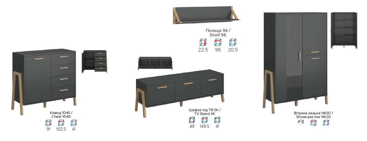 | Колір (відтінок) меблів | Антрацит, Сірий |