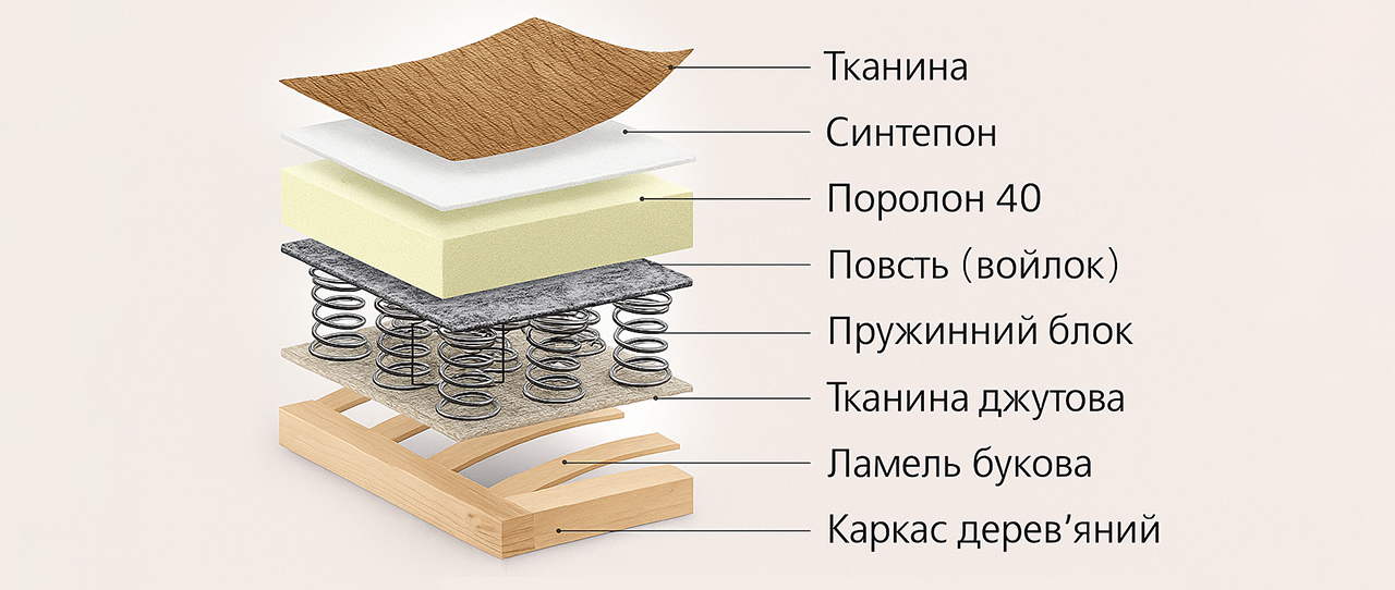 | Каркас дивану | ДСП, дерев'яний брус |