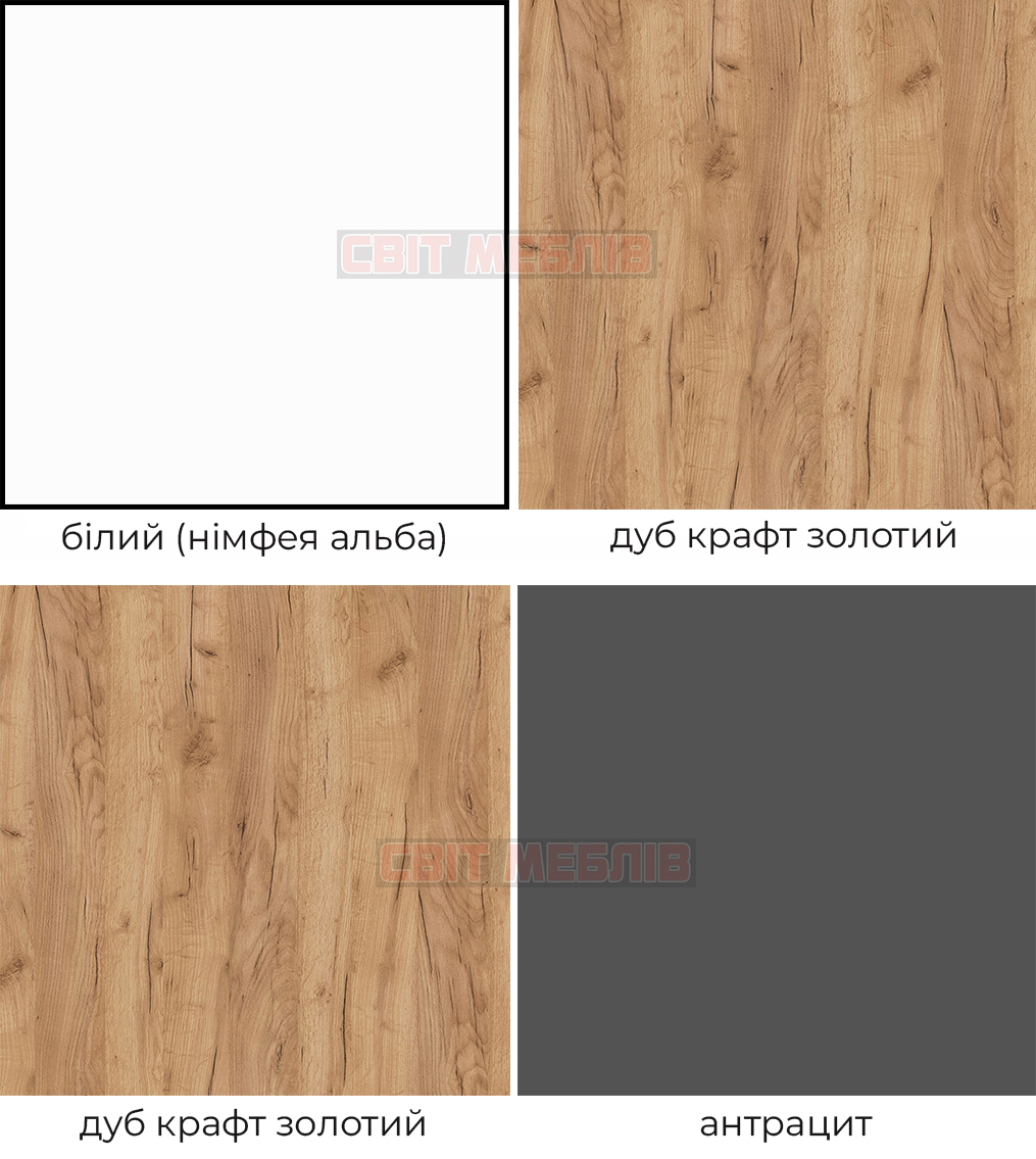 | Колір (відтінок) меблів | Дуб крафт золотий, Білий |