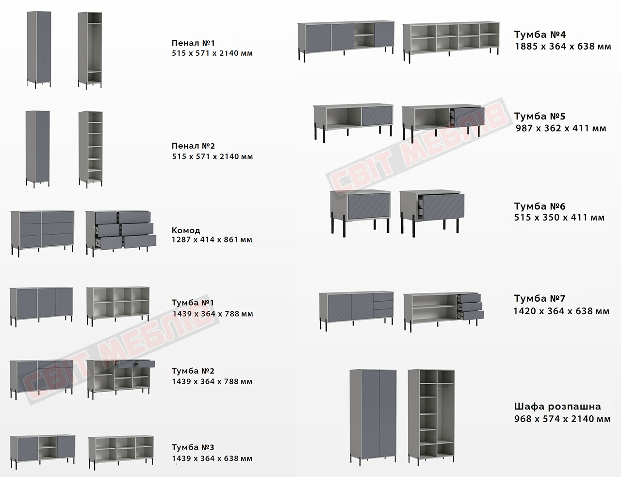 Усі елементи модульних меблів Leada: