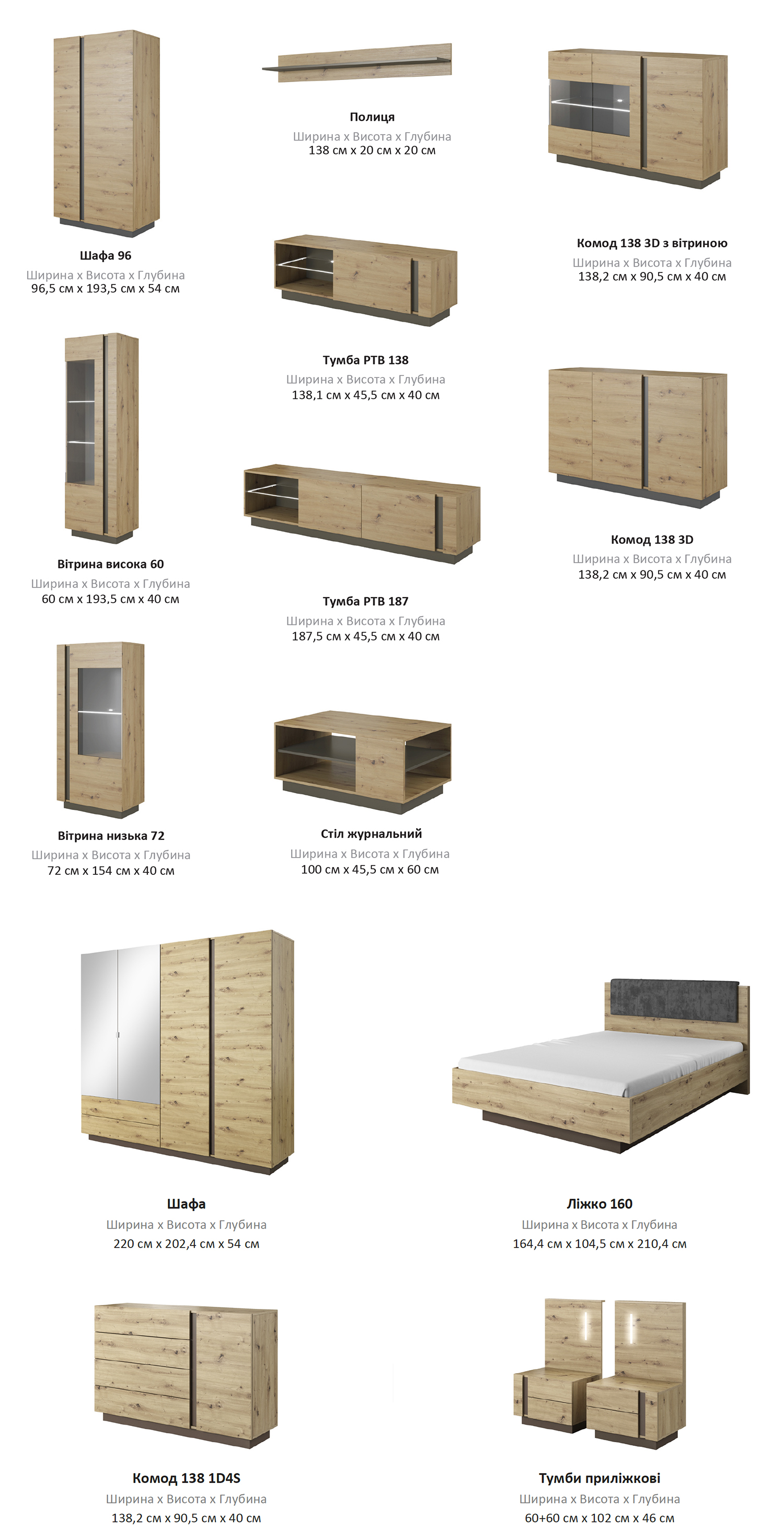 | Колір (відтінок) меблів | Дуб артизан+Графіт |