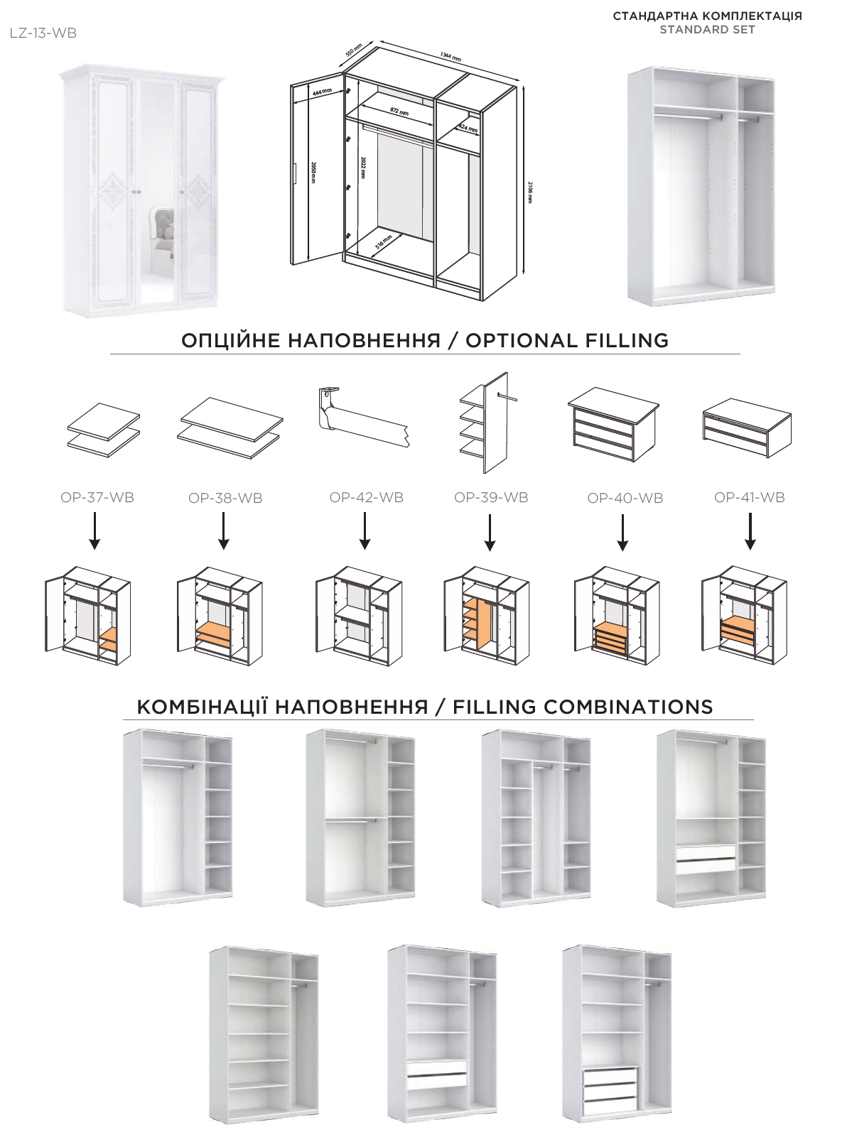 | Фасади | ДСП, дзеркало, ламінована ДСП |